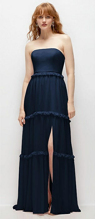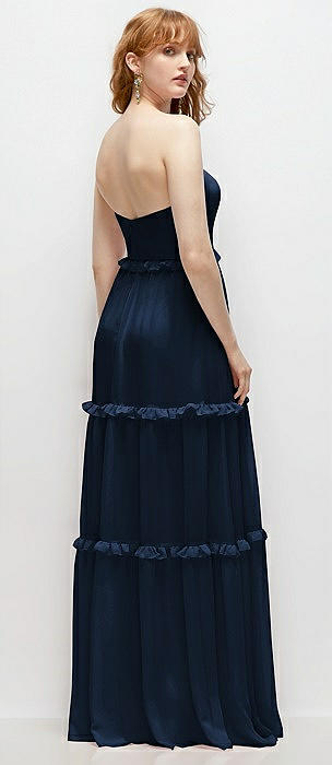 Strapless Chiffon Maxi Dress with Tiered Micro Ruffle Full Skirt in midnight navy