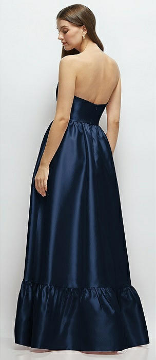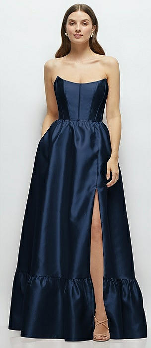 Strapless Cat-Eye Boned Bodice Maxi Dress with Ruffle Hem in midnight navy
