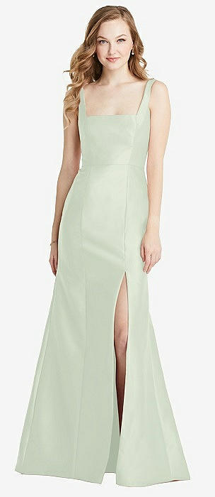Spaghetti Strap Draped Skirt Gown with Front Slit in mint green