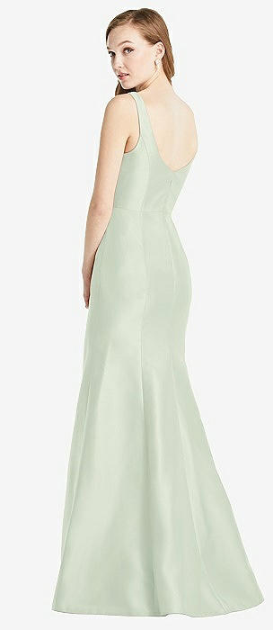 Sleeveless Satin Trumpet Gown with Bow at Open-Back in mint green