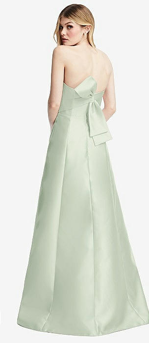 Strapless A-line Satin Gown with Modern Bow Detail in mint green