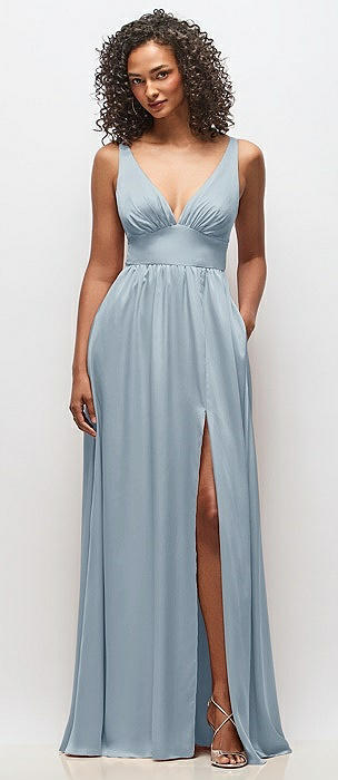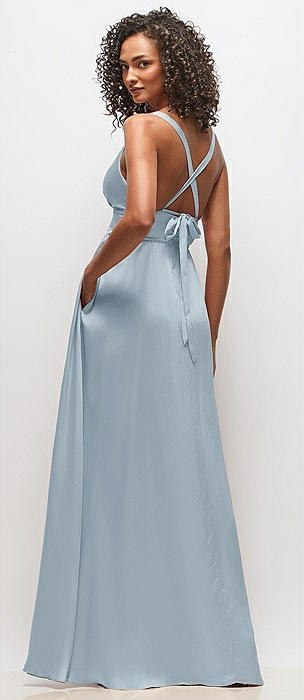 Strapless Bias Cuff Bodice Satin Gown with Pockets in mist