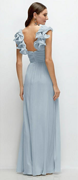 Dramatic Ruffle Edge Strap Chiffon Maxi Dress in mist