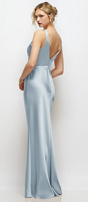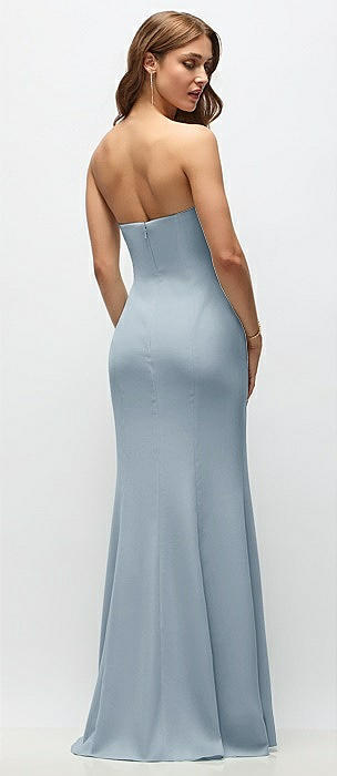 Strapless Cuff Neckline Satin Trumpet Gown in mist