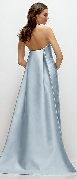 Strapless Satin Column Dress with Removeable Watteau Train in mist