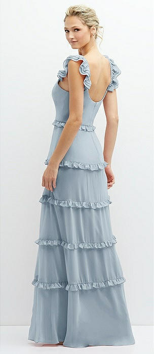 Tiered Chiffon Maxi A-line Dress with Convertible Ruffle Straps in mist