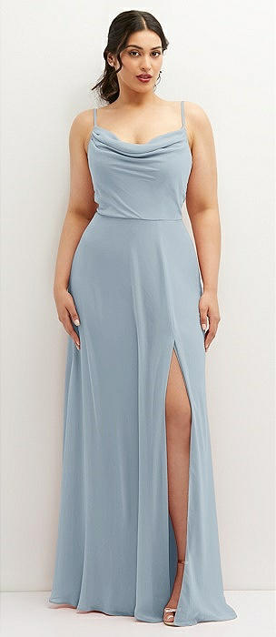 Soft Cowl-Neck A-Line Maxi Dress with Adjustable Straps in mist