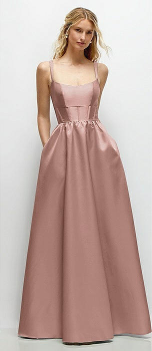 Scoop Neck Inset Corset Satin Maxi Dress with Pockets in neu nude