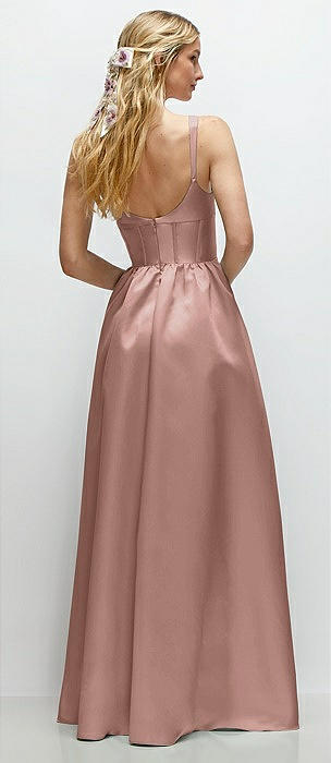 Strapless Bias Cuff Bodice Satin Gown with Pockets in neu nude