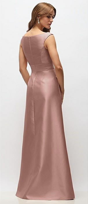 Basque-Neck Satin Column Maxi Dress with Off-the-Shoulder Bows in neu nude
