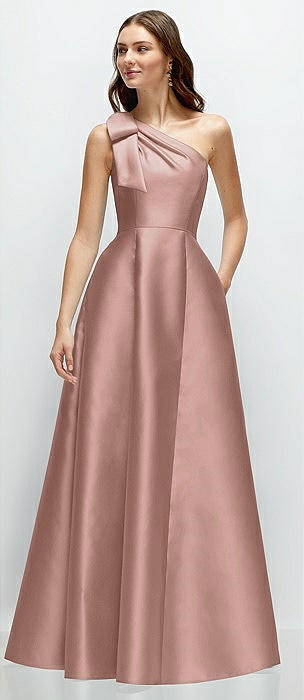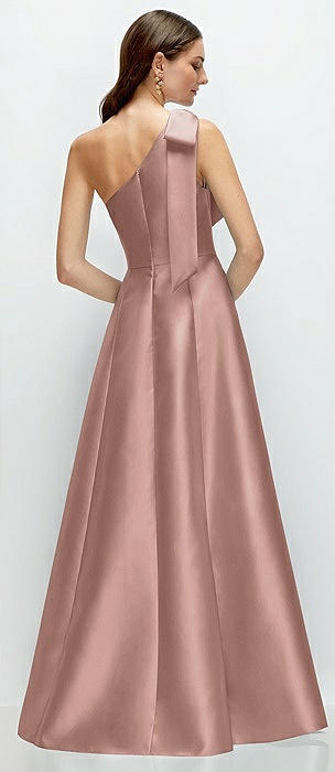 Bow One-Shoulder Full A-Line Satin Maxi Dress in neu nude