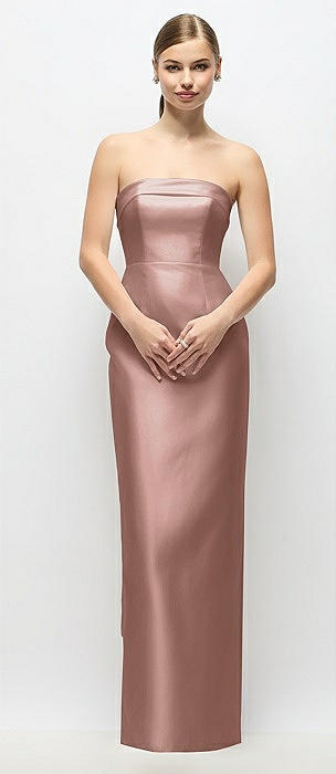 Strapless Cuff Satin Maxi Dress with Column Skirt & Back Bow in neu nude