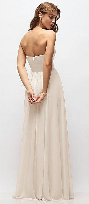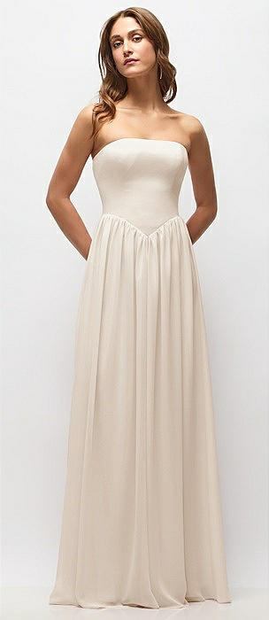 Strapless Basque Drop Waist Chiffon Maxi Dress with Shirred Skirt in oat