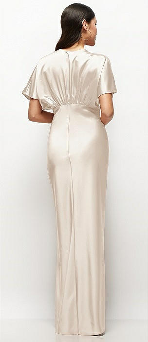 Plunge Neck Kimono Sleeve Satin Bias Maxi Dress in oat