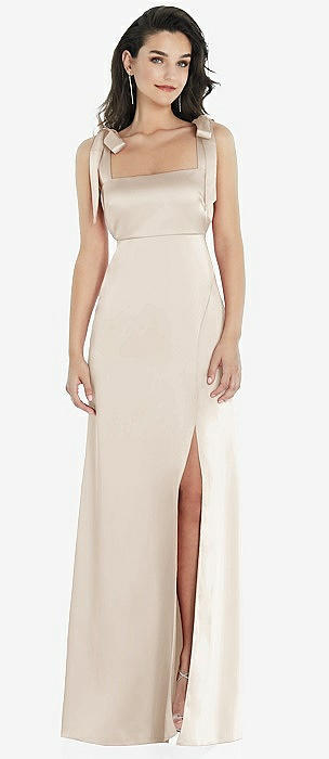 Flat Tie-Shoulder Empire Waist Maxi Dress with Front Slit in oat