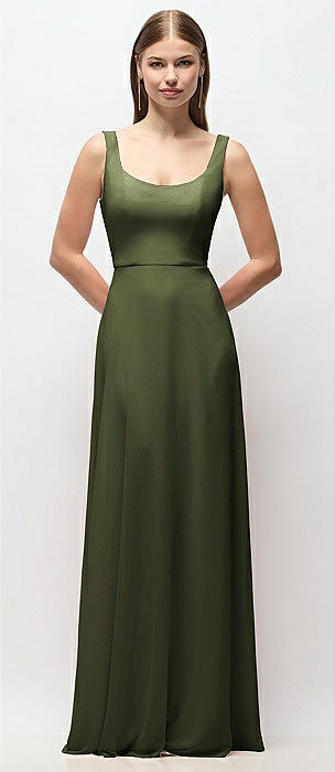 Scoop-Neck Tank Bodice Maxi Dress with Full Skirt in olive green