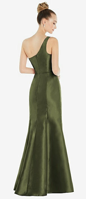 One-Shoulder Bias-Cuff Stretch Satin Mermaid Dress with Slight Train in olive green