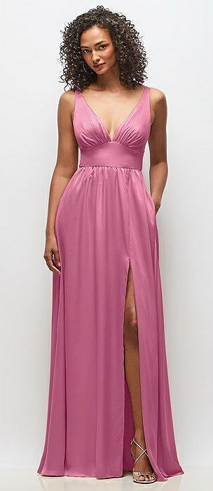 Deep V-Neck Shirred Skirt Maxi Dress with Convertible Straps in orchid pink