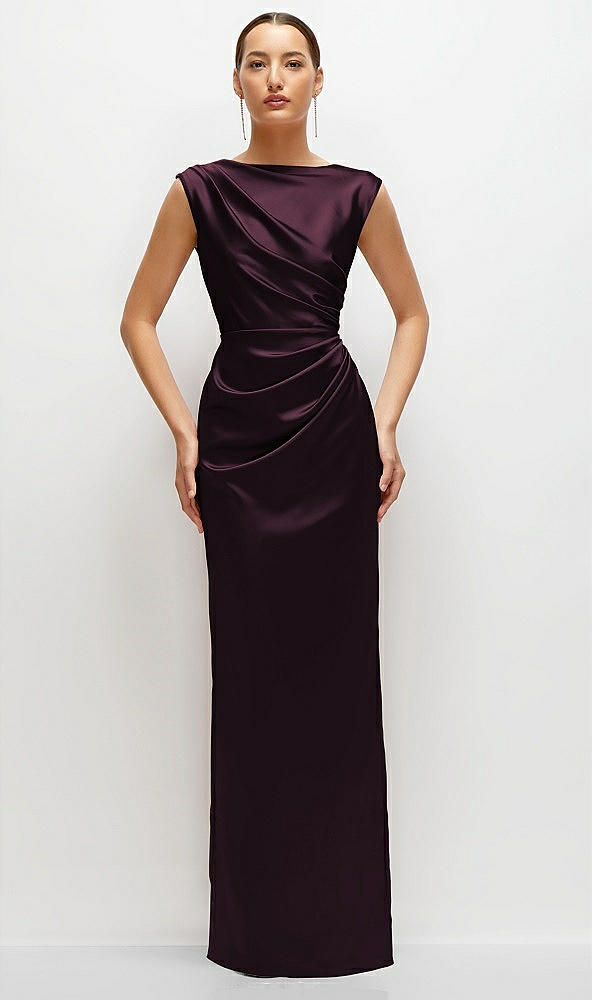 High Neck Sleeveless Cap Shoulder Satin Maxi Dress in Deep Plum