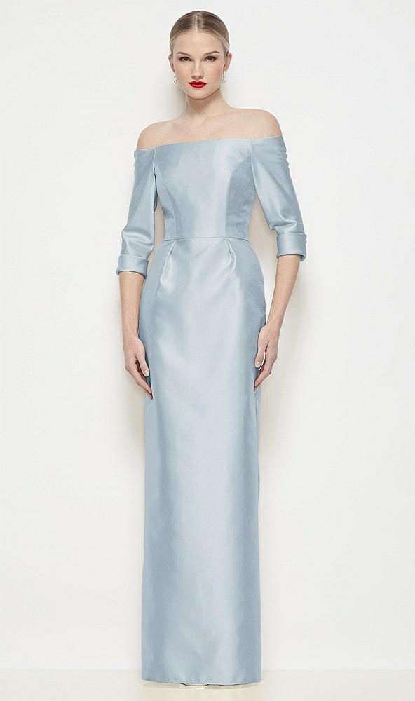 Off-the-Shoulder 3/4 Sleeve Column Satin Maxi Dress in Mist