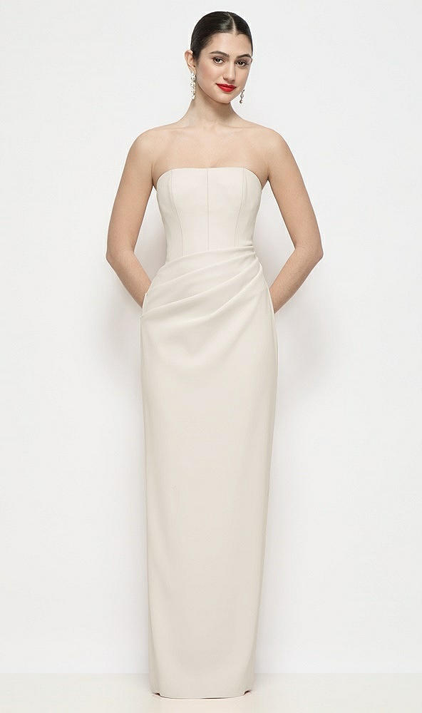 Strapless Asymmertical Drop Waist Corset Maxi Dress with Column Skirt in Ivory