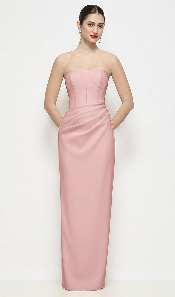 Strapless Asymmertical Drop Waist Corset Maxi Dress with Column Skirt in Rose