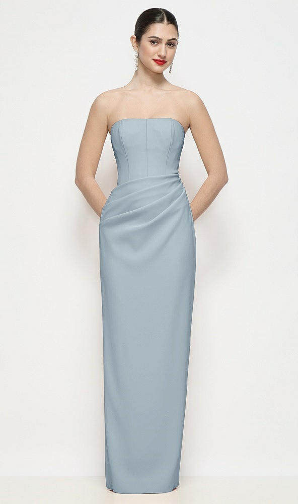 Strapless Asymmertical Drop Waist Corset Maxi Dress with Column Skirt in Mist
