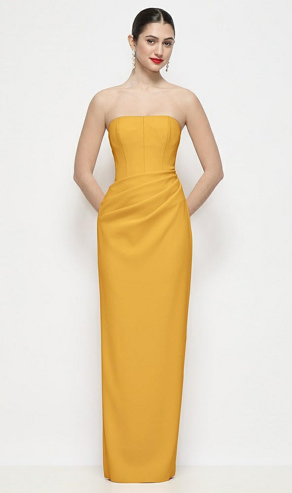 Strapless Asymmertical Drop Waist Corset Maxi Dress with Column Skirt in NYC Yellow