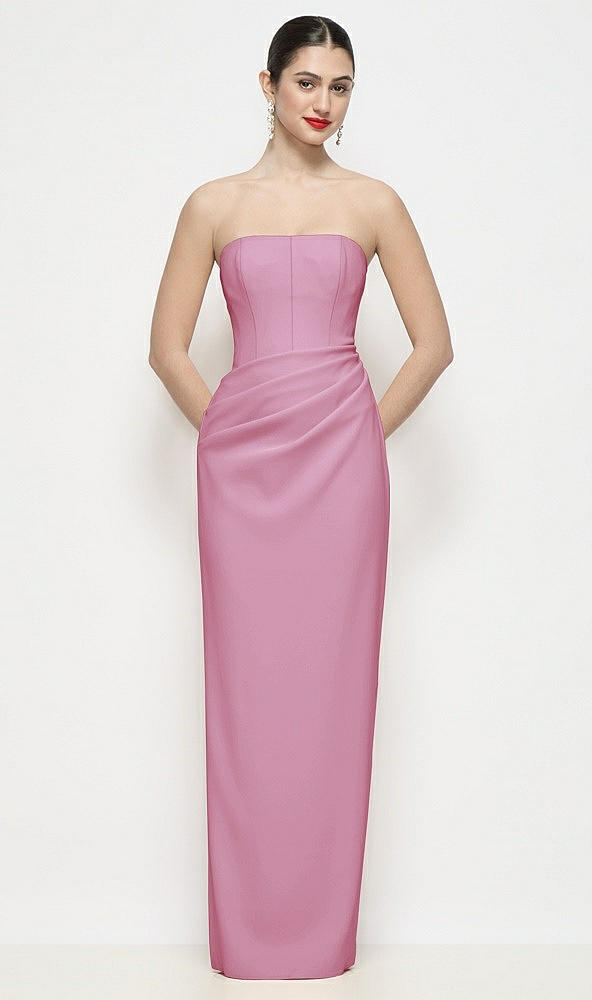 Strapless Asymmertical Drop Waist Corset Maxi Dress with Column Skirt in Powder Pink