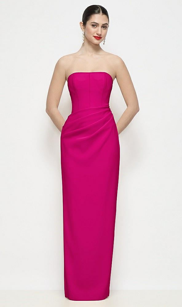 Strapless Asymmertical Drop Waist Corset Maxi Dress with Column Skirt in Think Pink