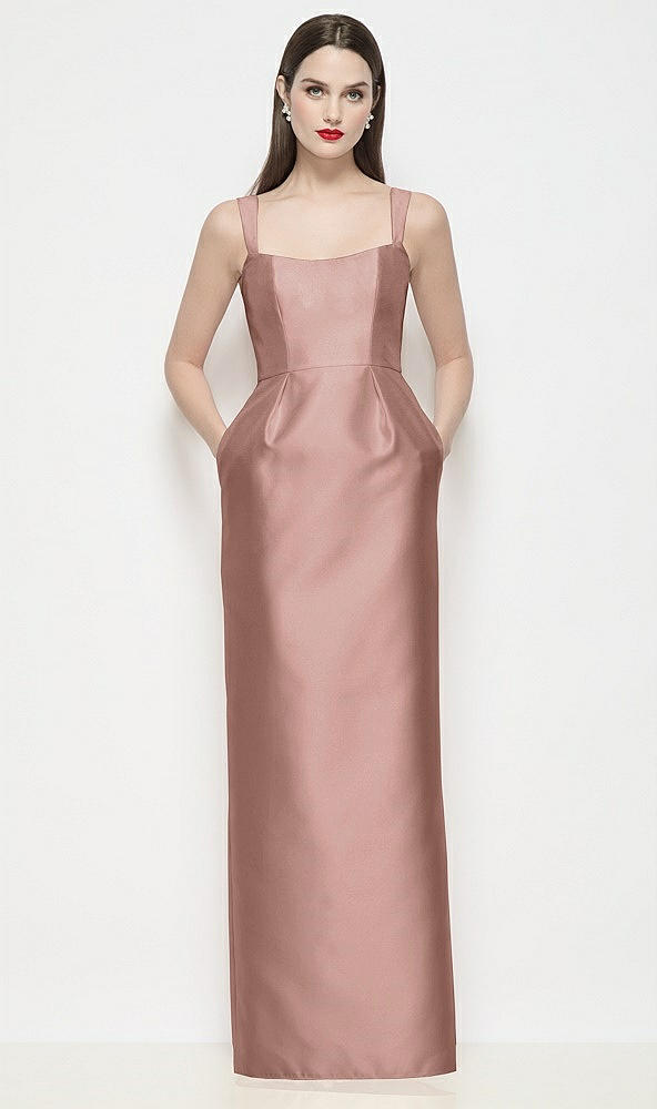 Shaped Strap Basque Neck Satin Maxi Dress with Column Skirt in Neu Nude