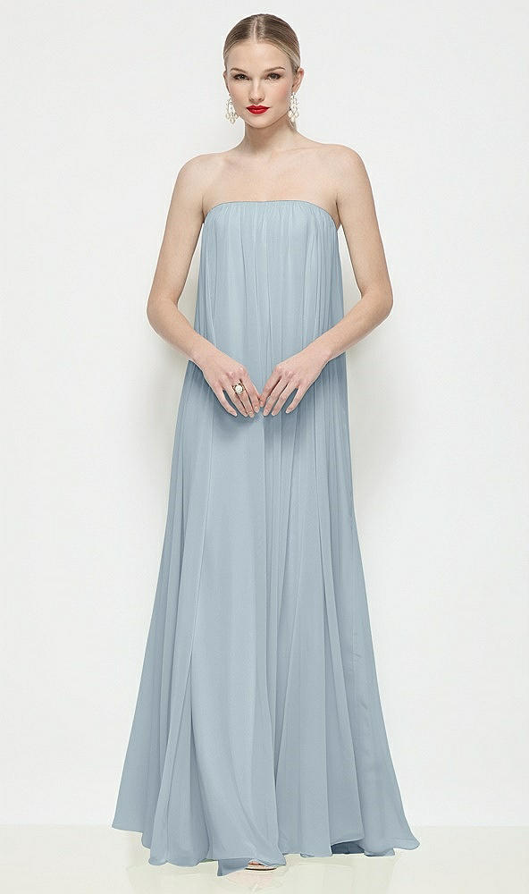 Strapless Shirred Chiffon Trapeze Maxi Dress in Mist