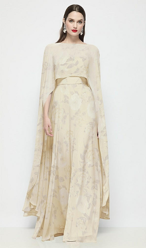 High-Low Sheer Floral Chiffon Cape in Butter Yellow Floral