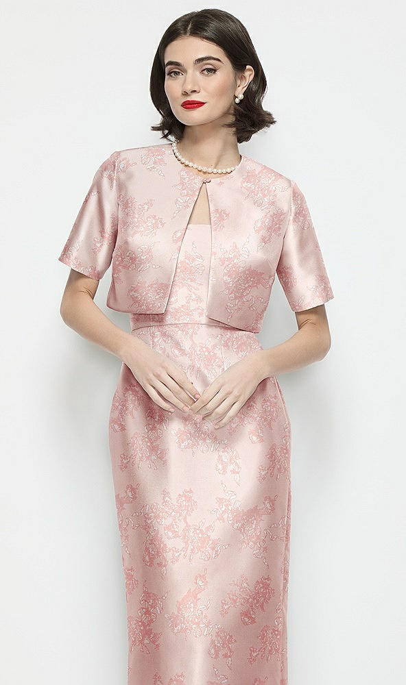Jewel Neck Cropped Floral Satin Jacket in Bow And Blossom Print