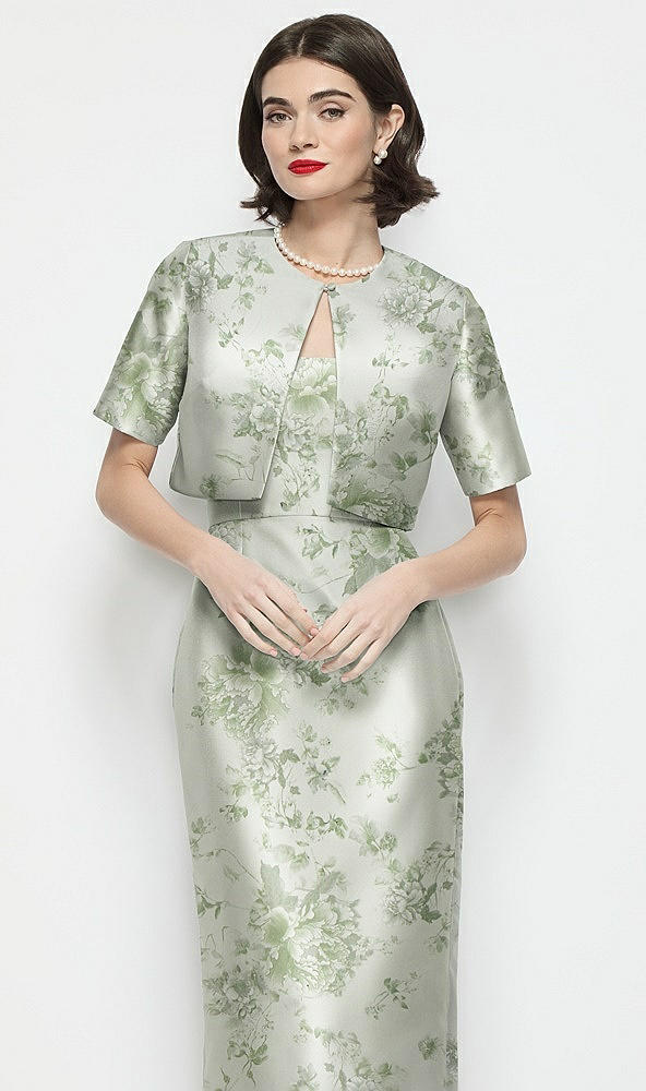 Jewel Neck Cropped Floral Satin Jacket in Sage Cottage Rose