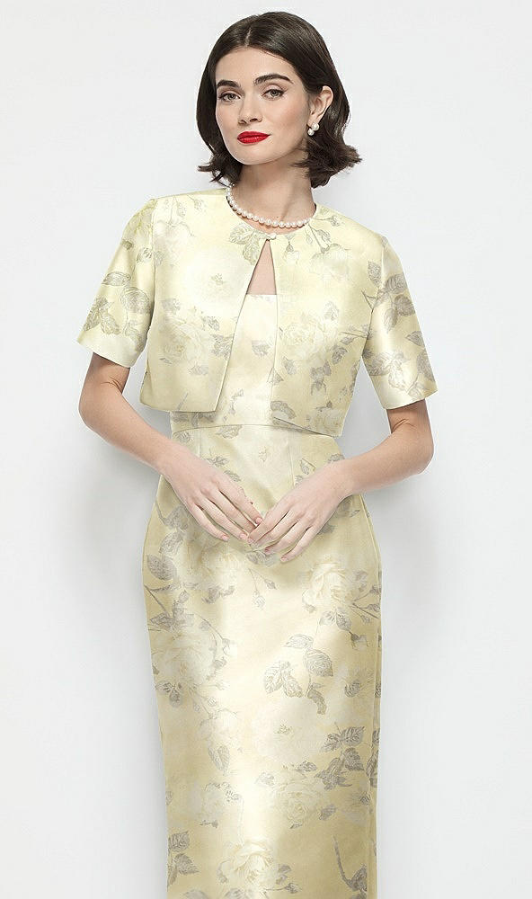Jewel Neck Cropped Floral Satin Jacket in Butter Yellow Floral