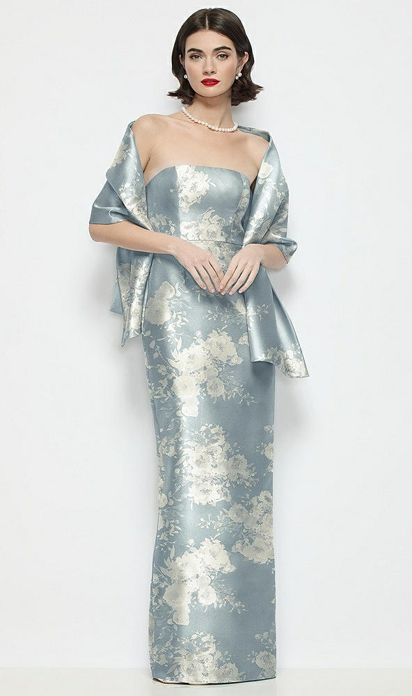 Floral Satin Wrap Stole in Porcelain Blue Seraphina Floral