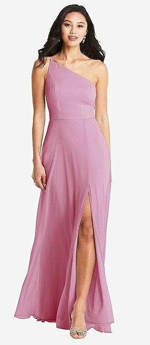 Shirred One-Shoulder Satin Trumpet Dress - Maddie in powder pink