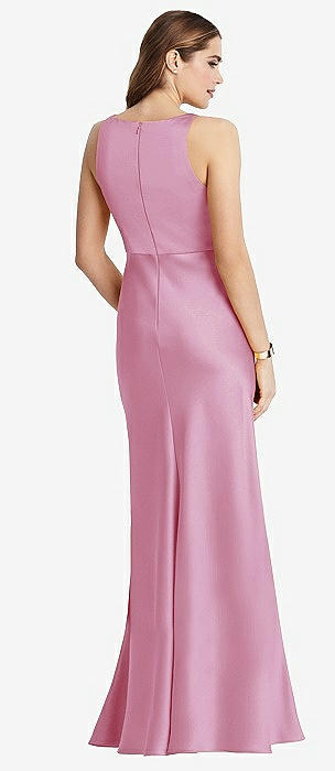 Open Neckline Cutout Satin Twill A-Line Gown with Pockets in powder pink