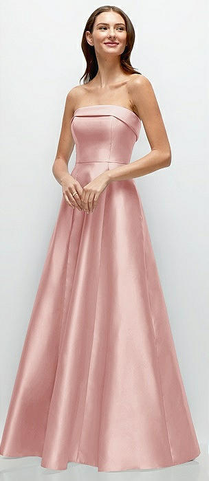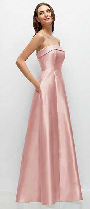 Strapless Bias Cuff Bodice Satin Gown with Pockets in rose