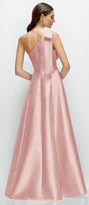Bow One-Shoulder Full A-Line Satin Maxi Dress in rose