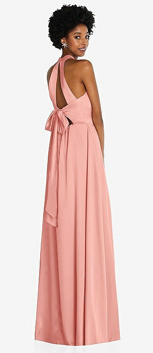 Jewel Neck Bowed Open-Back Trumpet Dress with Front Slit in rose