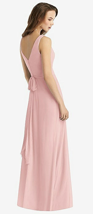 Sleeveless V-Neck Chiffon Wrap Dress in rose