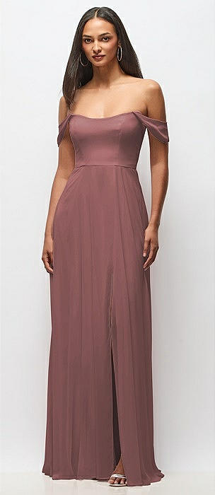 Off-the-Shoulder Draped Neckline Maxi Dress in rosewood