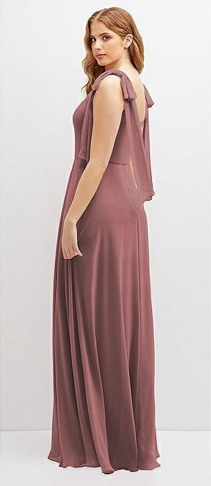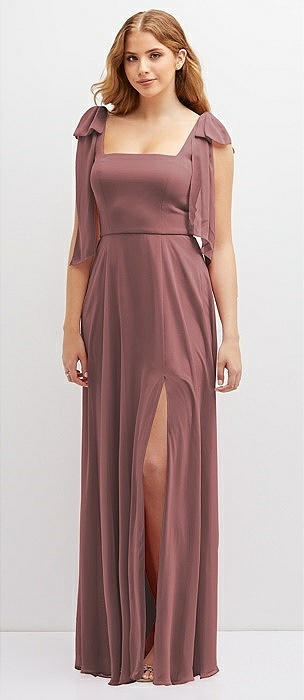 Bow Shoulder Square Neck Chiffon Maxi Dress in rosewood