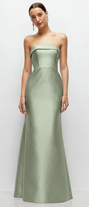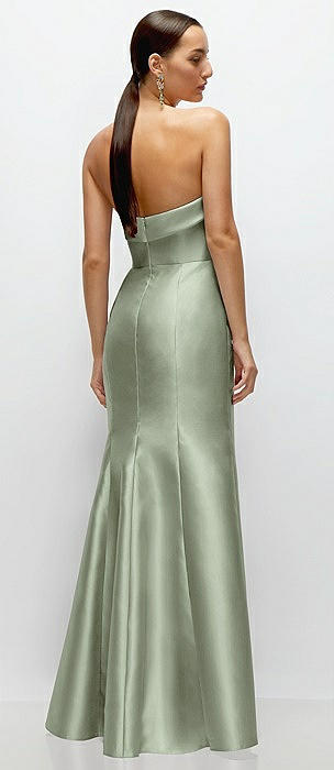 Strapless Cuff Neckline Satin Trumpet Gown in sage