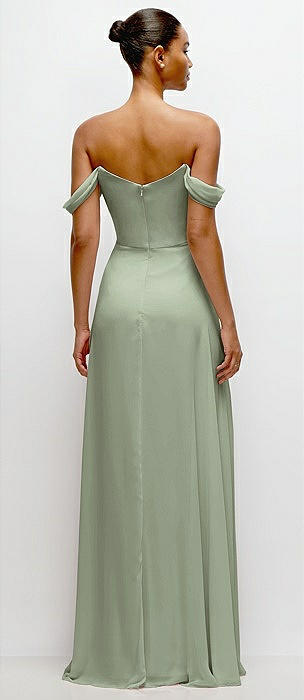 Off-the-Shoulder Draped Neckline Maxi Dress in sage