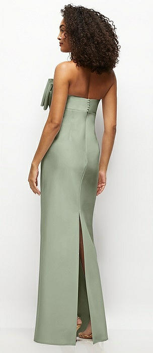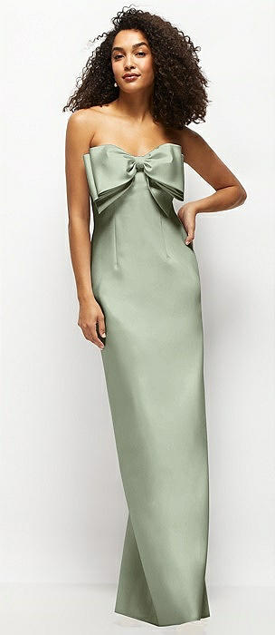 Strapless Satin Column Maxi Dress with Oversized Handcrafted Bow in sage