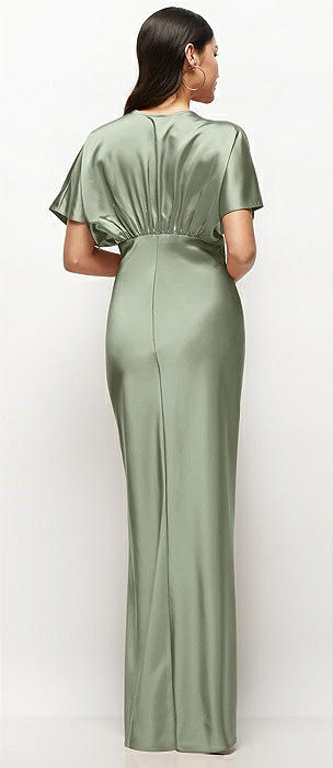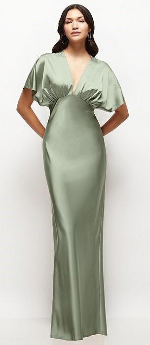 Plunge Neck Kimono Sleeve Satin Bias Maxi Dress in sage