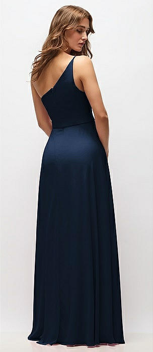 One-Shoulder Chiffon Maxi Dress with Shirred Front Slit in midnight navy